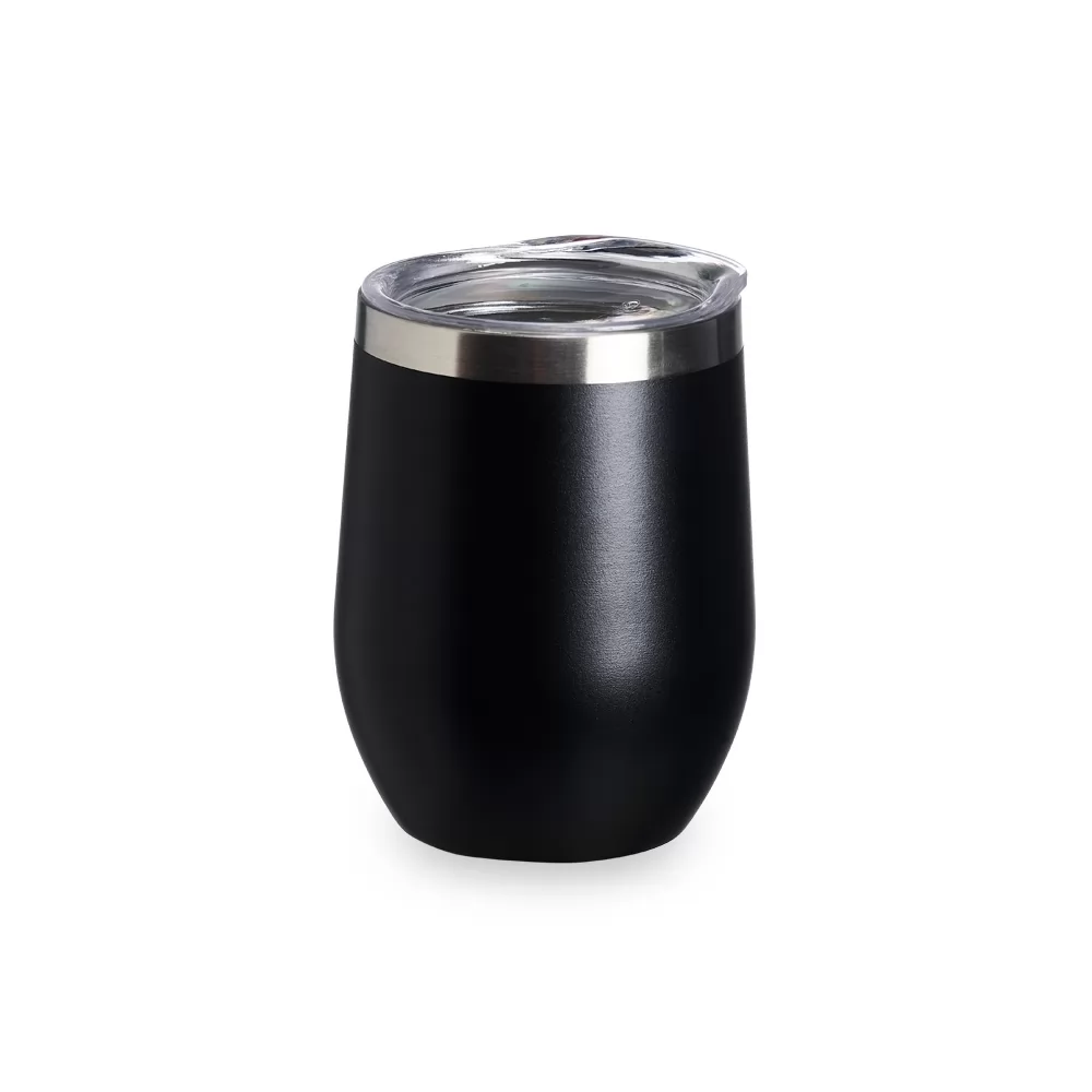 Copo térmico de capacidade de 320ml, feito em inox, com parede dupla e tampa plástica (livre de BPA) com bocal para um consumo mais rápido e prático.